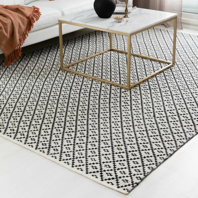 4Living Huurre villamattossa on kaunis ja trendikäs kuviointi. Mattoa voi käyttää kaksipuoleisesti, sillä matossa on siistit kanttaukset molemmilla puolilla. Maton materiaalina 100% villa.