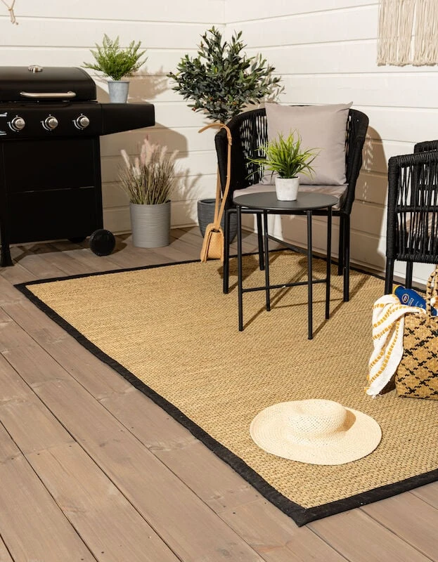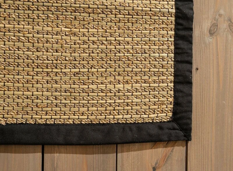 Kaunis ja viimeistelty 4Living Joki matto. Maton materiaalina on meriruoko, maton viimeistelee ruskeat kangasreunat. Matto sopii esimerkiksi eteistiloihin tai keittiöön, se soveltuu myös ulos katettuihin tiloihin. Miljöökuvissa oleva matto on kokoa 160×230 cm.