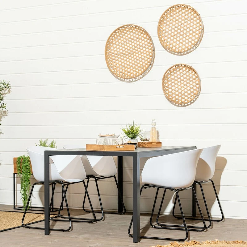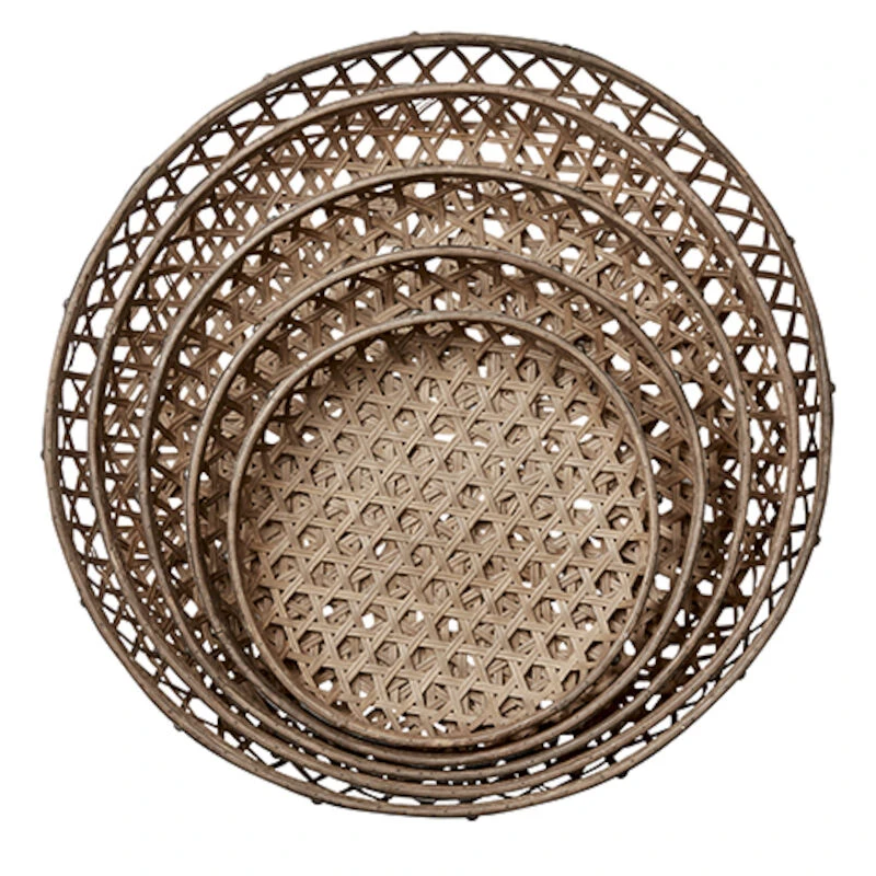 Upea, luonnonläheiseen sisustukseen sopiva Affari Sinan tarjotinsetti, jossa on viisi eri kokoista tarjotinta. Materiaalina bambu sekä metalli. Pinta on antiikkikäsitelty. Korkeus kaikissa tarjottimissa 5 cm, halkaisijat: 43 cm, 50 cm, 59 cm, 68 cm ja 75 cm. Käytä tarjottimia esillepanoissa, koristeena, seinällä. Käyttötarkoituksia on monia!