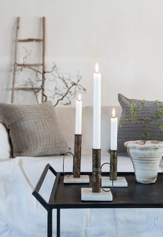 Kaunis Affari Unique kynttilänjalka tuo tunnelmaa pimeisiin iltoihin. Koko S. Materiaalina antiikkikäsitelty rauta sekä marmori. Kahva on kaunis yksityiskohta.