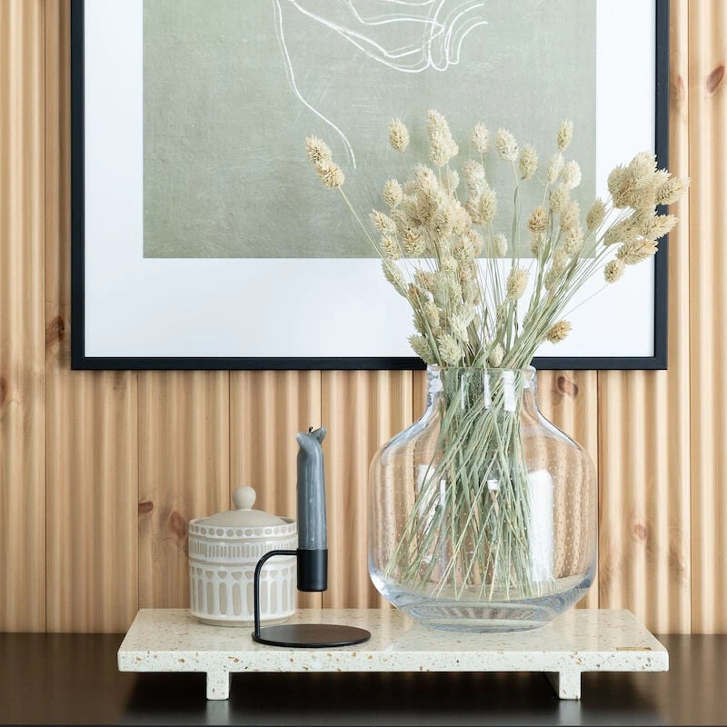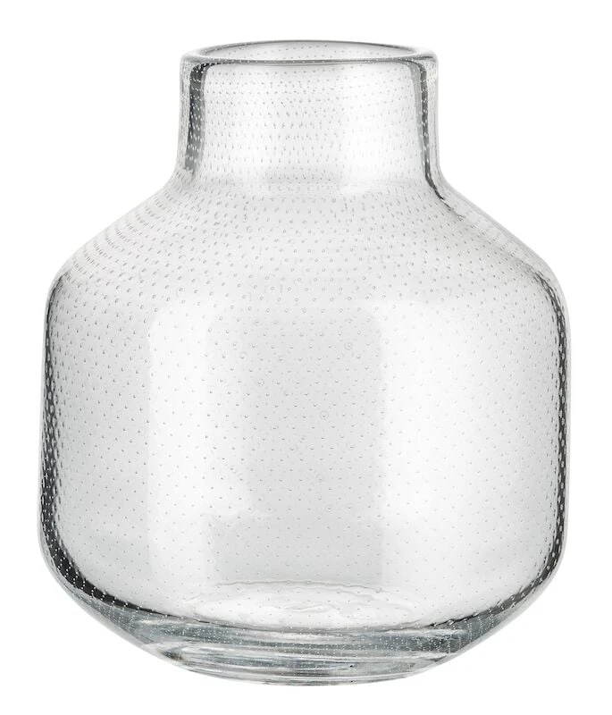 Aatos -lasivaasi on suupuhallettua lasia ja viimeistelty käsityönä, joten jokainen vaasi on yksilöllinen. Kauniit, pienet koristepisteet tuovat vaasiin herkkyyttä ja upea muotoilu näyttävyyttä. Mitat: keskikoko 18x18x20cm, iso 22x22x25cm.