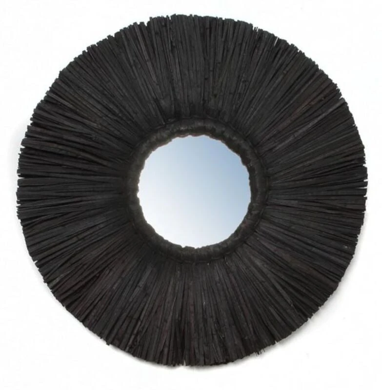 Boheemi Alang Alang peilin valmistusmateriaalina on käytetty heinää. Peilin kokonaishalkaisija on 35 cm, peiliosan halkaisija on 10 cm. Tuote on valmistettu käsityönä luonnonmateriaaleista, joten pieniä koko- ja värieroja voi ilmetä.