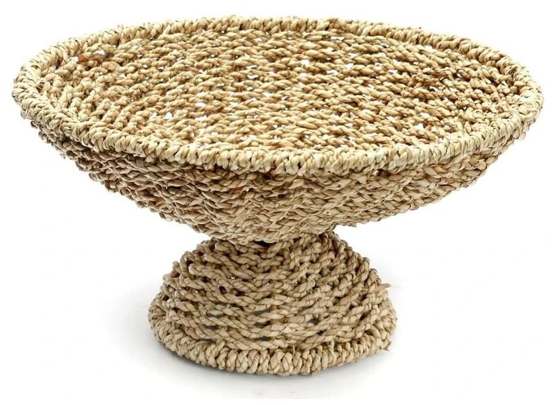 Ihastuttava meriruohosta valmistettu jalallinen hedelmäkulho. Kauniisti punottuun koriin saat hedelmät näyttävästi esille. Kauniin luonnonvärinen. Jokainen tuote on käsinvalmistettu luonnonmateriaalista, joten pieniä eroja värissä ja koossa voi esiintyä.