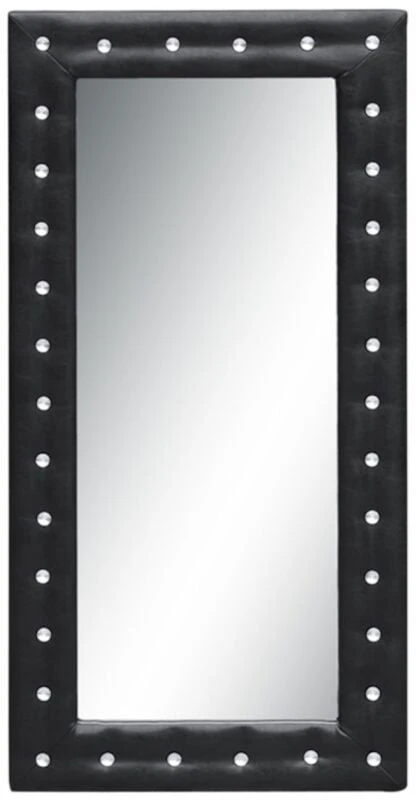 Todella näyttävä Las Vegas peili, jonka kehyksissä kirkkaat koristenapit. Runko on valmistettu puusta ja kalustelevystä. Peilin kehykset on pehmustettu vaahtomuovilla ja verhoiltu keinonahalla. Peili on tarkoitettu nojaamaan seinään, ei ripustettavaksi seinälle. Sisältää seinään kiinnitettävän tukikiinnikkeen.