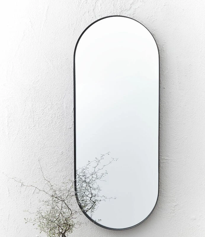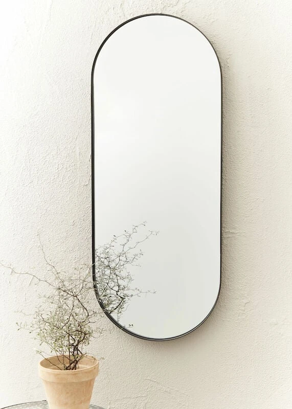 Kauniilla ovaalin muotoisella peilillä luot pieneen tilaan helposti tilan tuntua. Ovaali peili sopii kodin moniin tiloihin. Peilissä mustat kehykset. Peili kiinnitetään seinään ruuveilla, ruuvit eivät sisälly hintaan.