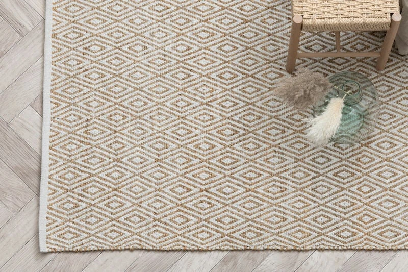 Fanni K Aulanko matto on kaunis toimikas-kudottu puuvillainen/hamppuinen matto. Molemmat päädyt ovat käännetyt. Aulanko sopii ihanasti eteiseen tai makuuhuoneeseen tuomaan kesäistä ja keväistä tunnelmaa.