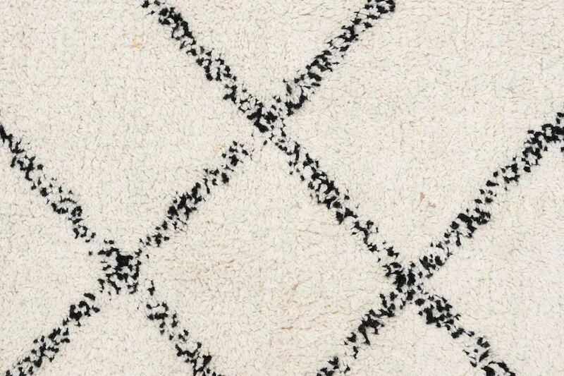 Kaunis ja harmoninen Fanni K Aura matto. Matto on tuftattua puuvillaa, päävärinä luonnonvalkoinen, jossa on tummalla graafinen kuviointi. Matto tuo tilaan pehmeää kodikkuutta ja se sopii hyvin kodin eri tiloihin. Kolme kokovaihtoehtoa: 140 cm x 200 cm, 160 cm x 230 cm ja 200 cm x 290 cm. Matto on kevyt, joten alle suositellaan liukuestettä.