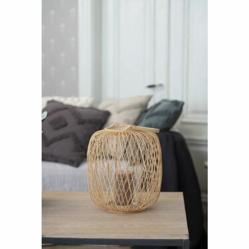 Kaunis bambusta valmistettu lyhty. Lyhdyn sisällä lasipideke kynttilälle. Lasipidikkeen koko 9x9x10 cm. Lyhdyssä ripa, josta voit ripustaa lyhdyn tai aseta pöydälle tunnelmaa tuomaan.