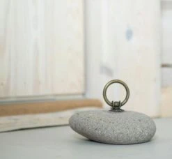 Kivestä valmistettu Fanni K Luoto Kivi ovistoppari. Kauniin yksityiskohdan muodostaa veneenkiinnitysrengas.