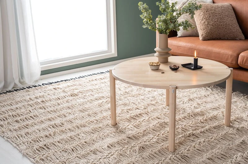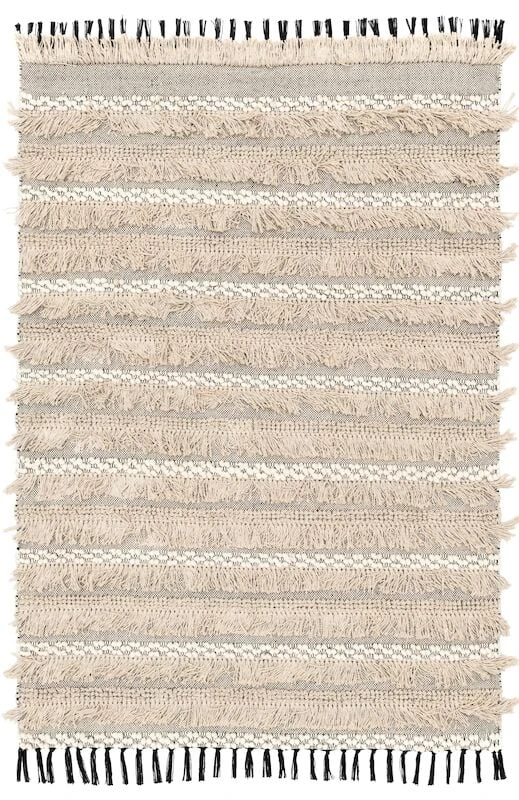 Ihastuttava hapsusomisteinen Fanni K Tunturi puuvillamatto tuo sisustukseen ripauksen boheemia tunnelmaa. Matossa on kauniiden hapsusomisteiden lisäksi molemmissa päädyissä mustat hapsut. Matto on mukava jalan alla ja sitä on kevyt liikutella esimerkiksi siivouksen ajaksi.