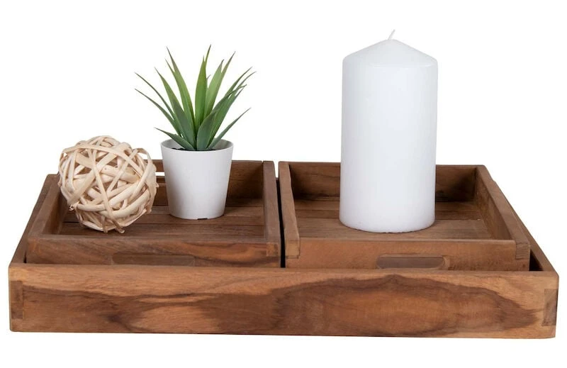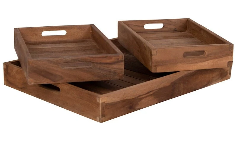 House Nordic Faro – setti sisältää 3kpl tiikistä valmistettuja kauniita tarjottimia. Pienemmät tarjottimet mahtuvat kätevästi isomman sisälle. Isomman tarjottimen mitat 39×29 cm, pienempien 26×18 cm.