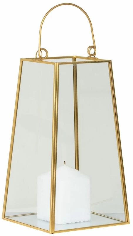 Sisäkäyttöön tarkoitettu moderni lyhty. Lyhdyssä on lasiset ikkunat, jotka heijastavat kynttilän tai valoketjun valoa kauniisti ympärilleen. Upeat kuparin väriset kehykset ja kahva tuovat kauniin lisäilmeen ja tämä lyhty sopiikin kotiin, johon halutaan klassista ja eleganttia lookia.