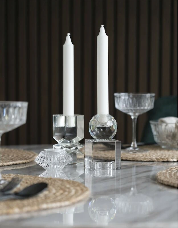 Kaunis ja elegantti lasinen Torcello kynttilänjalka sopii niin ruokapöydän kattauksiin kuin vaikkapa olohuoneeseen lipaston päälle. Tätä käytännöllistä kynttilänjalkaa voi käyttää kahdella tavalla kääntämällä sen ylösalaisin. Neliön muotoiseen osaan sopii tuikkukynttilä ja pyöreään osaan korkea kynttilä.