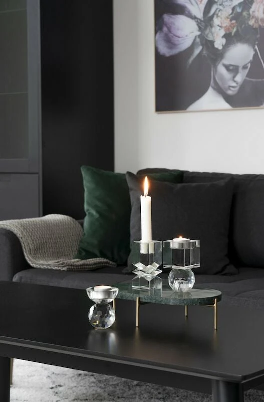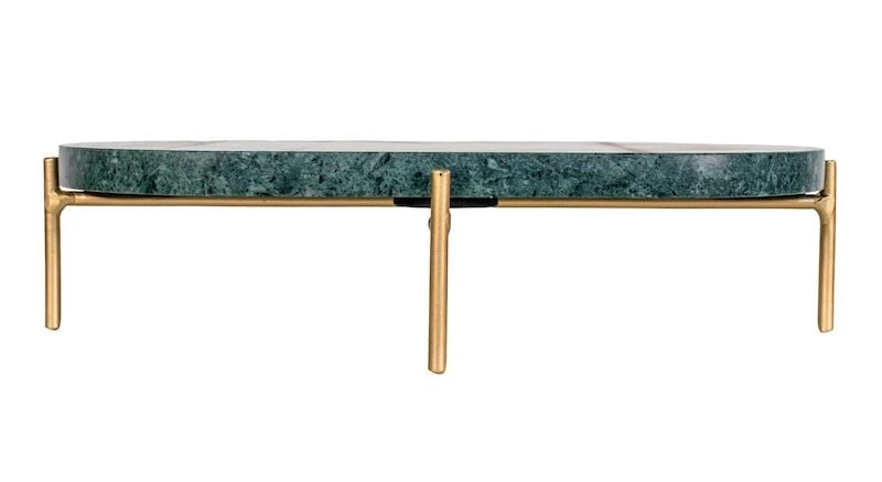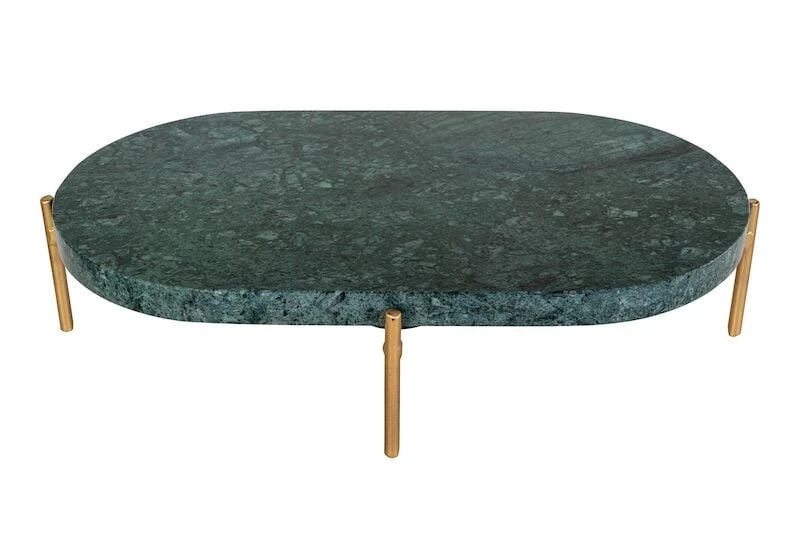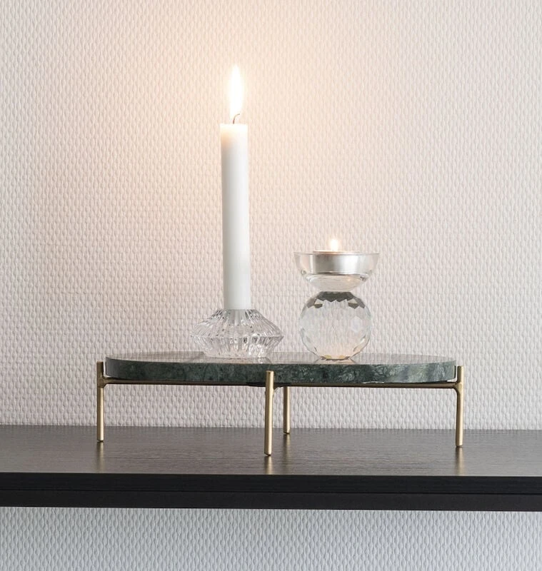 Kauniissa Vegas tarjottimessa on vihreä marmorikansi ja messinkiset jalat. Tarjotinta voi käyttää niin ruokapöydällä kattauksissa tuomassa ripauksen ylellisyyttä kuin olohuoneen pöydällä kynttilöiden alusena.