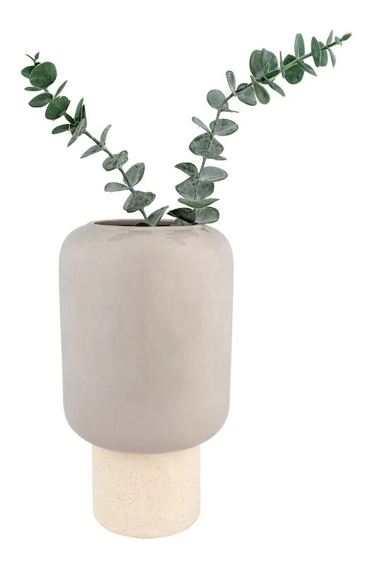 House Nordic Vibo vaasi sopii loistavasti alustaksi leikkokukille tai kasveille. Keraamisen vaasin yläosan harmaa lasite kiiltää kauniisti ja jalkaosan mattapinta tuo kontrastia kokonaisuuteen. Maljakon selkeä muoto on rauhallinen sisustuselementti. Kukat on hyvä istuttaa esim. istutusruukkuihin koska materiaalit imevät ajan kanssa vettä itseensä, eivätkä näin ollen ole vedenpitäviä.