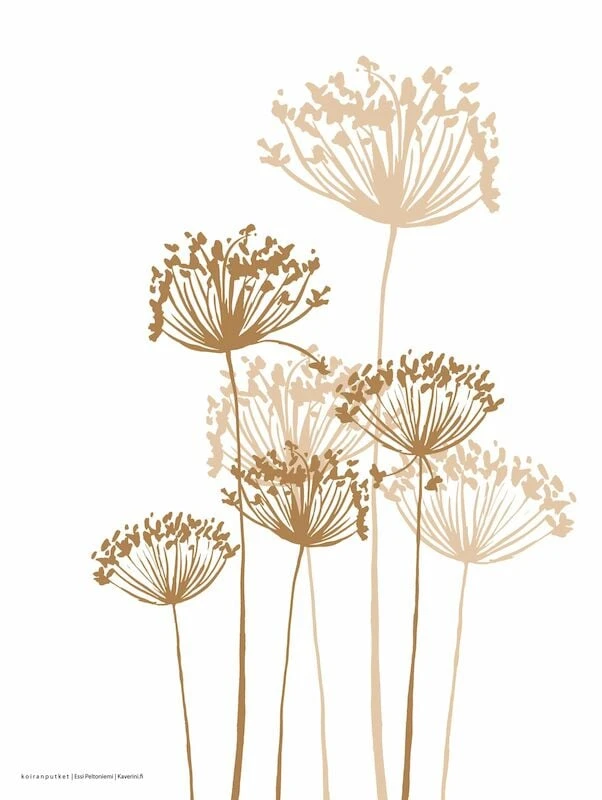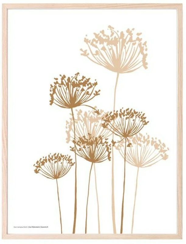 Essi Peltoniemen tekemä vesivärityö koiranputkista. Kaunis luonnollinen sisustuselementti. Vesivärityö on painatettu Suomessa laadukkaalle suomalaiselle paperille. Juliste toimitetaan kartonkikuoreen pakattuna.