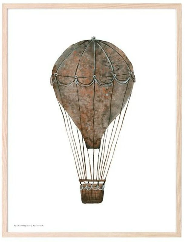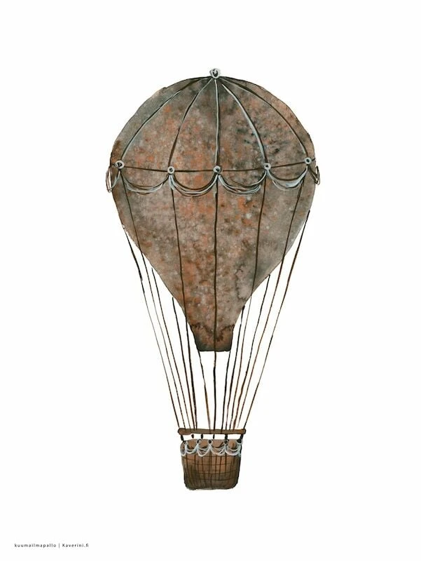 Essi Peltoniemen tekemä tyylikäs juliste Kuumailmapallosta. Alkuperäinen teos on maalattu vesiväreillä. Painatettu Suomessa laadukkaalle suomalaiselle paperille. Juliste toimitetaan kartonkikuoreen pakattuna.