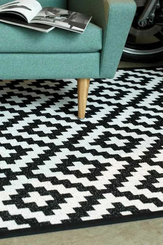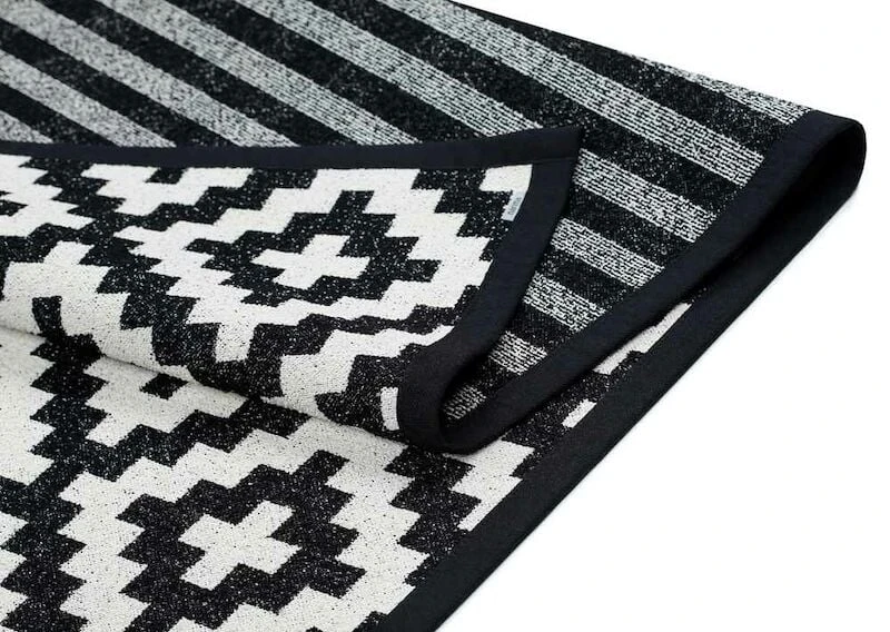 Graafisesti kuvioitu, laadukas Narma Viki kaksipuolinen puuvillamatto. Erilaiset kuosit eri puolilla, joten pystyt helposti vaihtamaan tunnelmaa mattoa kääntäen.