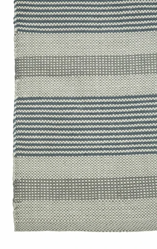 Upea Svanefors muovimatto. Matossa sinisiä ja harmaita raitoja. Materiaalina 100% PET.