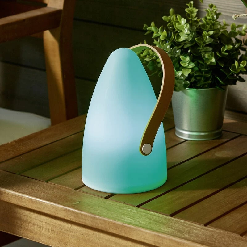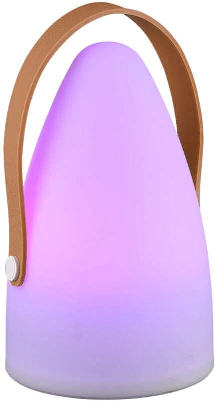 Ladattavassa Trio Haitissa on tyylikäs ja käytännöllinen kuminen kantohihna, joka tuo valaisimelle lisää käyttömahdollisuuksia. Sen voi ripustaa koukkuun, puuhun tai halutessaan kantaa mukanaan kuten vanhan ajan lyhtyä. Haiti on kerrassaan tunnelmallinen valaisin useilla ominaisuuksilla; 9 eri valotilaa sisältäen mm. valkoisen 3000K sävyn lisäksi RGB värit ja värinvaihtotoiminnon. IP44 kotelointiluokka tarkoittaa sitä, että tuote on suojattu roiskuvalta vedeltä + kappaleita vastaan, joiden halkaisija on 1 mm tai suurempi eli valaisin soveltuu kylpyhuonekäyttöön sekä muihinkin kosteisiin tiloihin sisällä ja ulkona. Paketin mukana tulee USB-latausjohto. 5 tunnin latausajalla jopa 8 tuntia valaistusaika (valkoisella sävyllä). Valaisimen korkeudessa ei ole huomioitu kantohihnaa. Pohjassa on katkaisin, josta saa vaihdettua myös väriä. Pitäessä katkaisinta 3 sekuntia pohjassa valaisin sammuu.