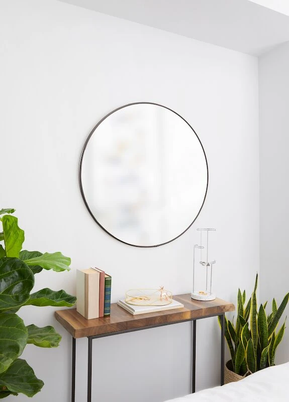 Iso pyöreä peili raikastaa huoneesi ulkonäköä ja lisää tilantuntua. Peilissä on siro metallinen kehys, joka on titaanin värinen. Peilin takana on ripustuslenkki, jonka avulla peili ripustetaan seinälle. Hinta ei sisällä kiinnitykseen tarvittavia ruuveja.