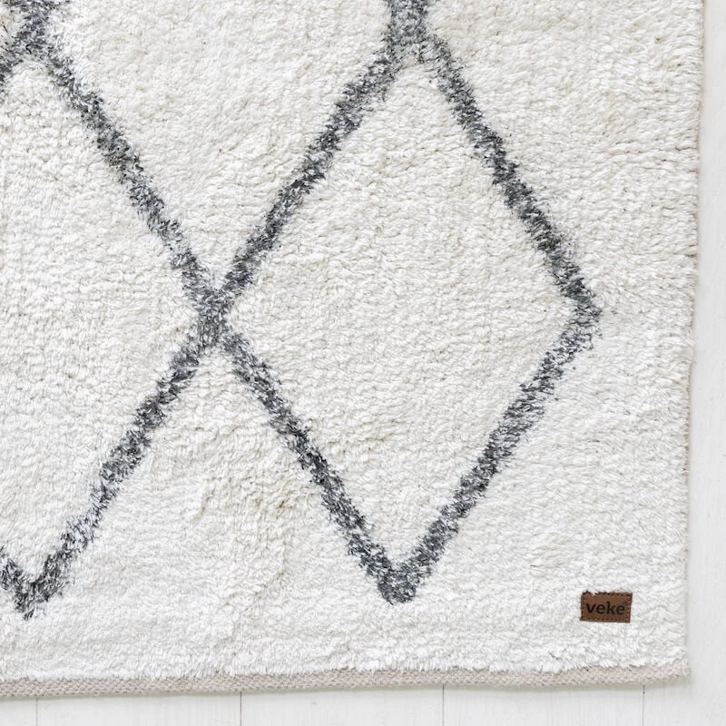 Trendikäs salmiakkikuvioilla varustettu puuvillamatto on ajaton ja sopii monenlaiseen sisustukseen ja tilaan. Väri valkoinen, materiaalina 100% puuvilla.Matto on tuftattu. Matossa oleva salmiakkikuviointi on painettu mattoon. Maton päädyissä on kestävä kanttaus. Suositellaan liukuestettä maton alle.