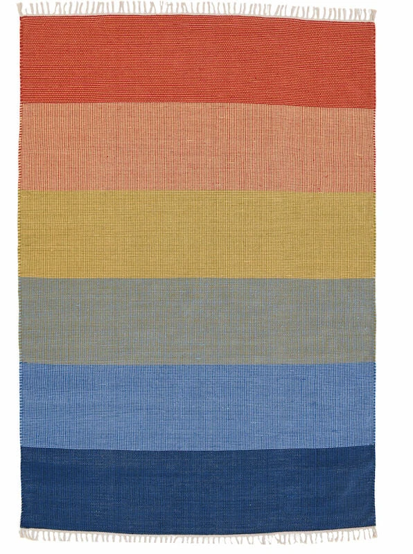 Iloisen värinen raitakuosinen puuvillamatto esimerkiksi lastenhuoneisiin ja keittiöihin. Maton on käsin kudottu ja sen päissä on perinteiset hapsut. Tuo sisustukseen leikkimielisyyttä ja väriä tällä kauniilla ja helppohoitoisella .