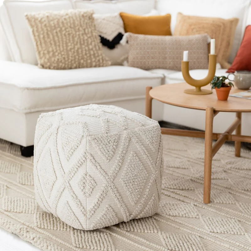 Skandi on kaunis vaalean sävyinen rahi, jonka päällinen on 100% puuvillaa ja täytteenä polystyreenipalloja. Kudottu kohokuviointi rahin pinnassa on tehty rouheasta puuvillalangasta. Kaunis rahi on mainio sisustuselementti, joka toimii myös lisäistuimena.