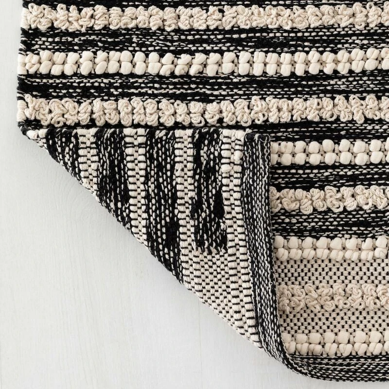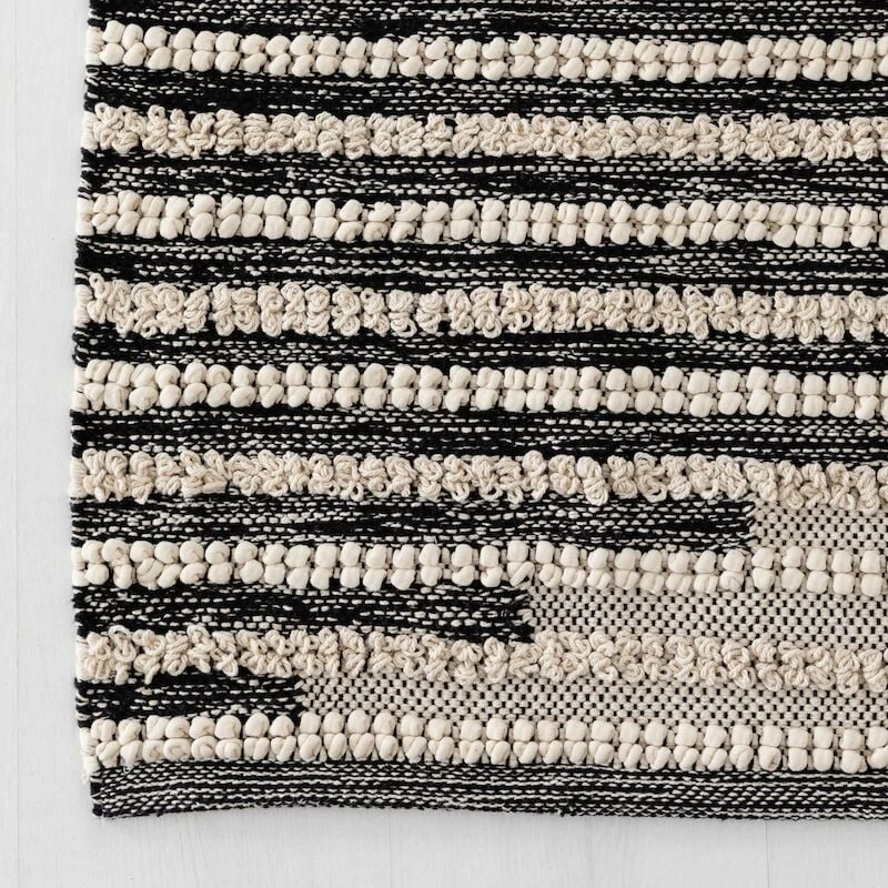 Graafisesti kuvioitu Viiru puuvillamatto, jossa luonnonvärinen raidoitus kohokuvioinnilla. Rauhallinen yleisilme ja maanläheiset värit sopivat monenlaiseen sisustukseen.