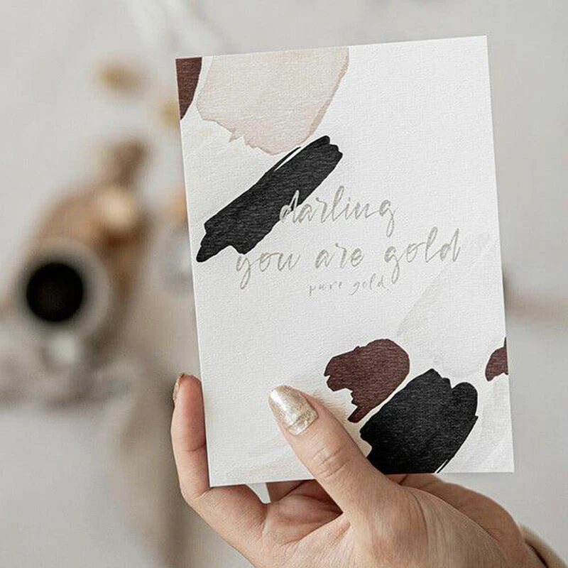 Kaunis Xeraliving DARLING PURE GOLD postikortti on painettu matalle taidepaperille. Kortin pinnassa on kaunis pinta ja myös ihana tuntuma. Kortissa käytetty paperi on FSC- ja PEFC-sertifioitua. Käytetty puuaines tulee vain vastuullisesti hoidetuista metsistä. Kortin on suunnitellut Jenni Hakkarainen.