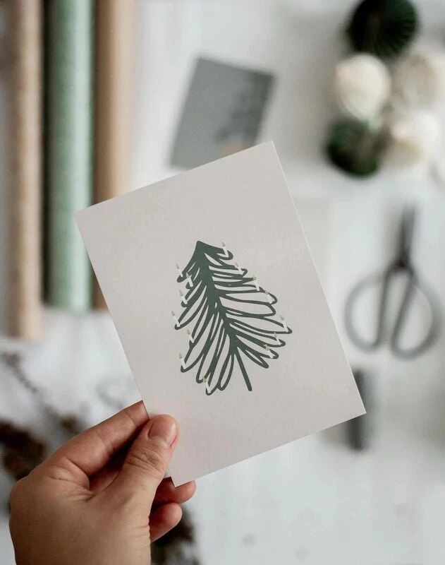 Kaunis ja pelkistetty moderni joulukortti hauskalla designilla. Kortissa käytetty paperi on FSC- ja PEFC-sertifioitua. Käytetty puuaines tulee vain vastuullisesti hoidetuista metsistä. Kortin on suunnitellut Jenni Hakkarainen