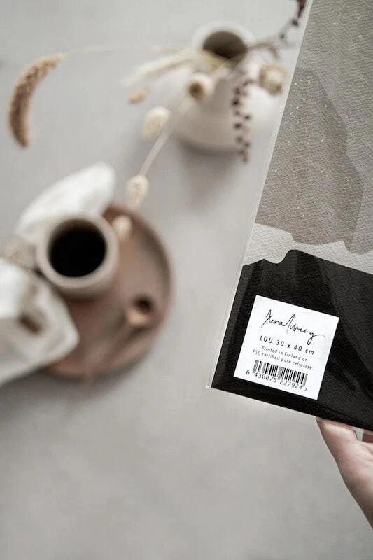 Neutraalit värisävyt on helppo sijoittaa osaksi erilaisia sisutuksia. Tämän abstaktin julisteen resepti koostuu beigen ja merensinisen sävyistä, skandinaavisuudesta sekä ripauksesta herkkyyttä. Julisteen koot sopivat standardikokoisiin kehyksiin, joten voit luoda halutessasi upeita taulukollaaseja. Julisteet valmistetaan PEFC-sertifioidusta Antalis Edixion Offset 300g mattapaperista Suomessa, Printhaus Pori Oy:ssä. Julisteen suunnittelija on Jenni Hakkarainen. Kehykset on ostettava erikseen.