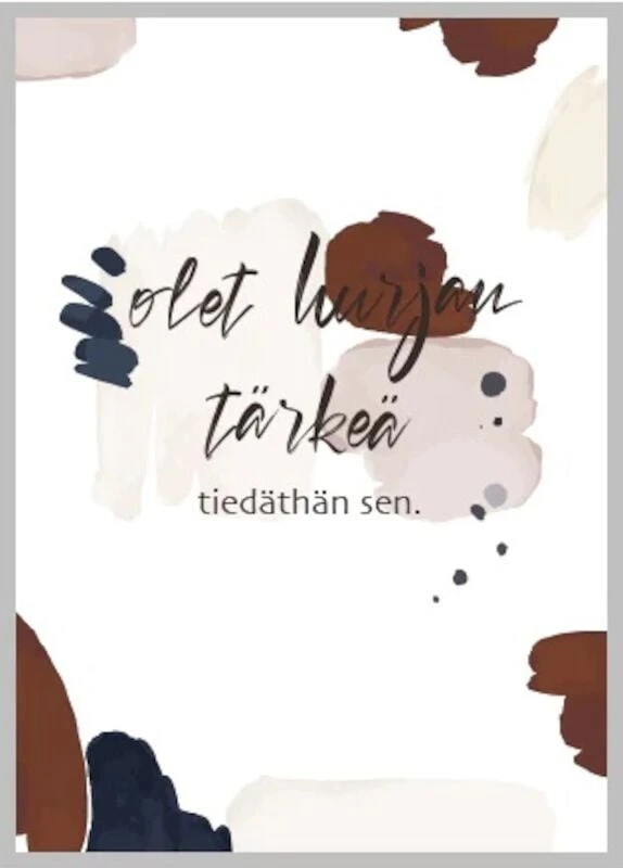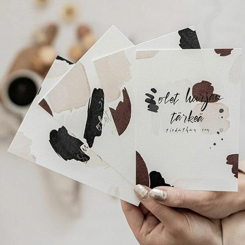 Lähetä tärkeälle ihmiselle kaunis kortti. Kortti on painettu taidepaperille, jossa on kaunis pinta ja ihana tuntuma. Kortissa käytetty paperi on FSC- ja PEFC-sertifioitua. Käytetty puuaines tulee vain vastuullisesti hoidetuista metsistä.